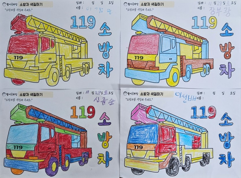 11월 29일 인지활동 - 소방차 색칠하기