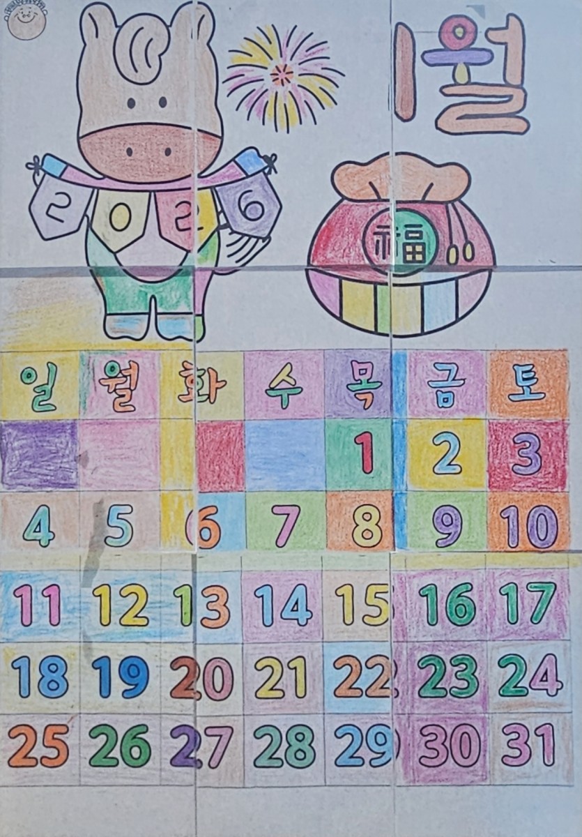 12월 31일 인지활동 - 1월 달력 협동화 2일차