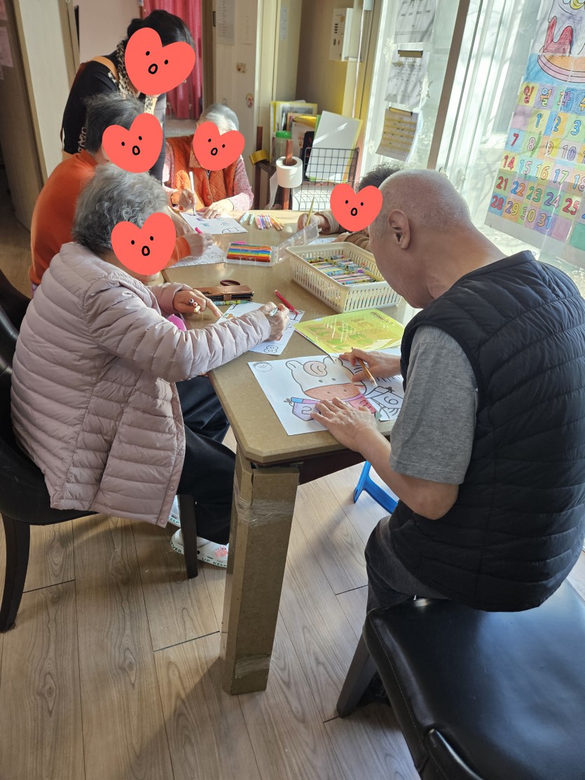 신*순 어르신은 여러 자루의 색연필을 한꺼번에 활용하는 독특한 방식으로 활동에 몰입하셨고, '건강한 식사'를 새해 목표로 언급하시며 소박하고 건강한 일상의 소중함을 일깨워 주셨습니다.