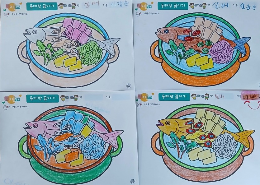 신*순 어르신은 알록달록한 색감을 사용해 보기만 해도 먹음직스러운 어르신만의 특별한 동태탕을 완성해 주셨습니다.