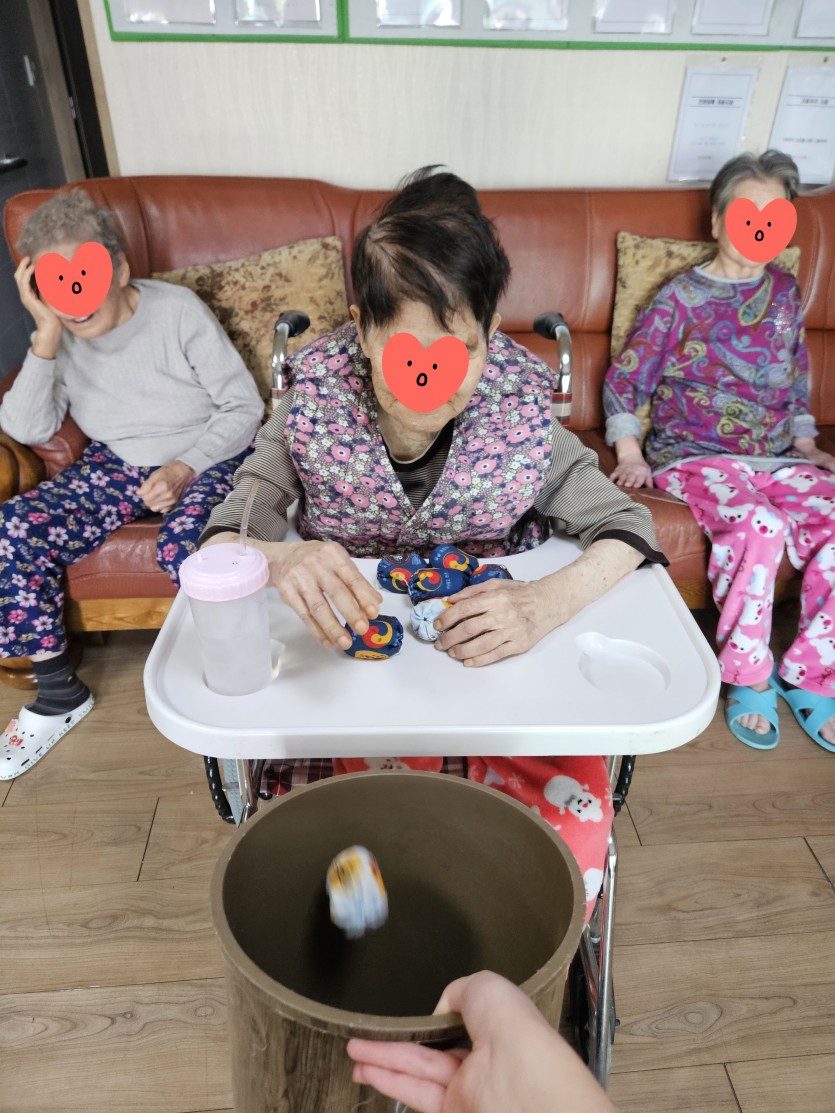 또, 처음엔 조준이 어려워 아쉬워하셨지만, 통을 가까이 옮겨 드리자 냅다 집어넣으시며 환호하신 어르신도 계셨어요. 모두 명중시킨 명사수 어르신, "통 거리를 더 멀리" 해달라고 요청하며 팔의 힘을 과시하신 어르신까지, 모두가 집중하며 즐거운 시간을 가졌답니다!