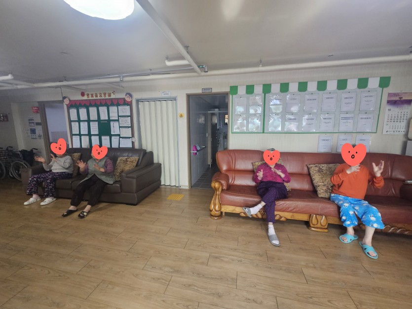 오늘 어르신들의 건강을 위한 체조 시간에는 흥과 유쾌함이 넘쳤어요.