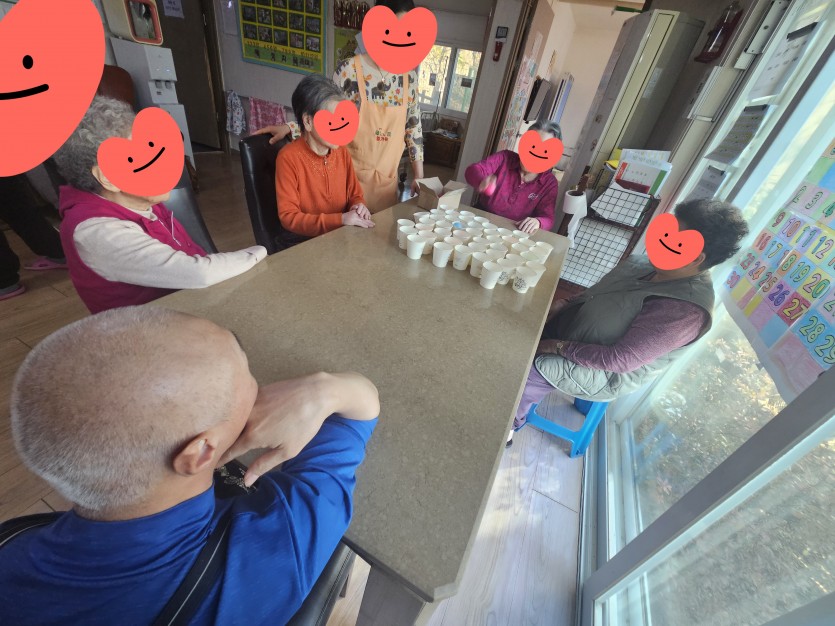 오늘은 '종이컵에 탁구공 던지기'로 명랑 운동회를 열었어요!