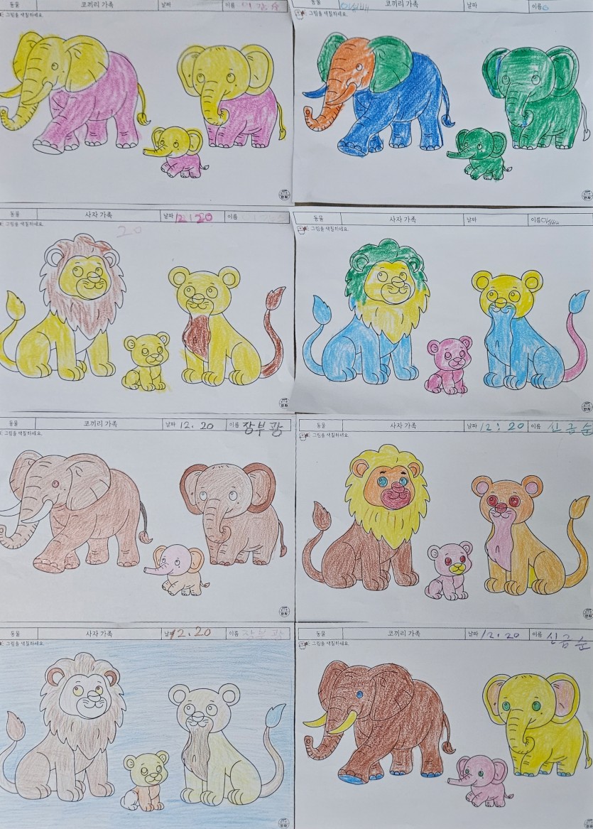 사자 가족 & 코끼리 가족 색칠하기'로 동물 친구들을 만났습니다.