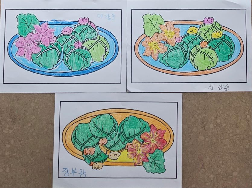 오늘은 '호박잎 쌈밥 색칠하기' 활동을 통해 명절 음식에 얽힌 어르신들의 삶의 지혜를 엿보았어요.