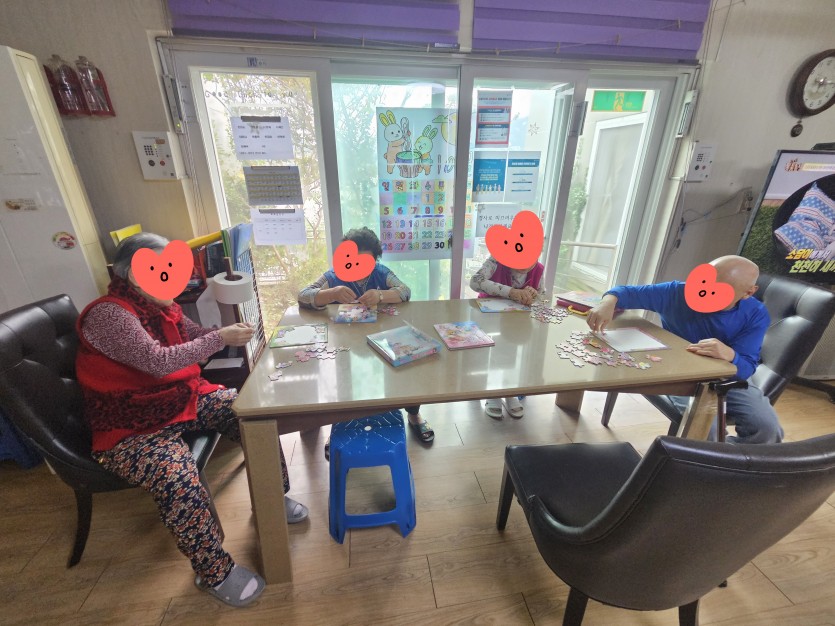 오늘은 '퍼즐 맞추기'로 어르신들의 인지 능력을 자극했어요.