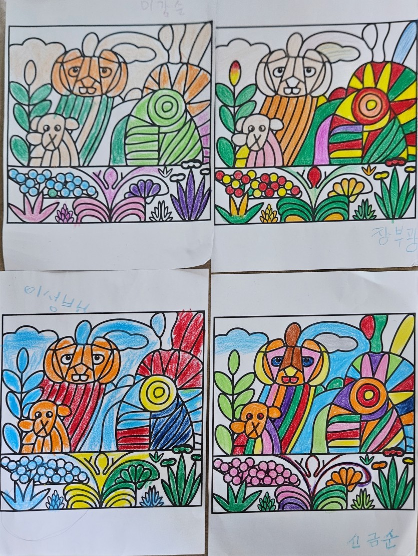 오늘은 그림 속 동물들에게 저마다의 이야기를 불어넣는 창의적인 시간이었습니다. 같은 그림이었지만, 붓끝에서 펼쳐지는 어르신들의 상상력과 개성만큼은 모두 달랐습니다. 때로는 "너무 느리다"고 말씀하시며 고민하는 모습까지, 그림에 진심을 다하는 모습에서 각자의 내면의 이야기가 담긴 소중한 작품이 완성되었습니다.