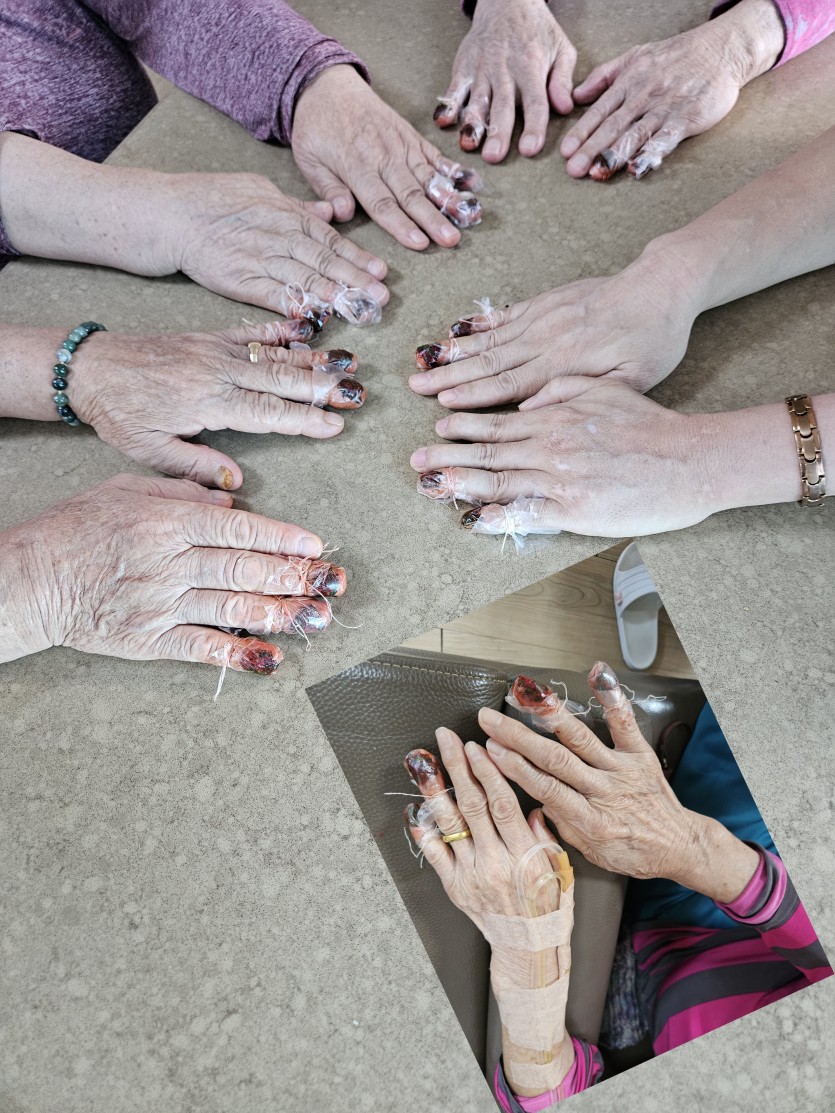 아름답게 물든 손톱을 보며 미소 짓는 어르신들의 모습에서 활동에 대한 높은 만족도와 행복감이 느껴져요:)
