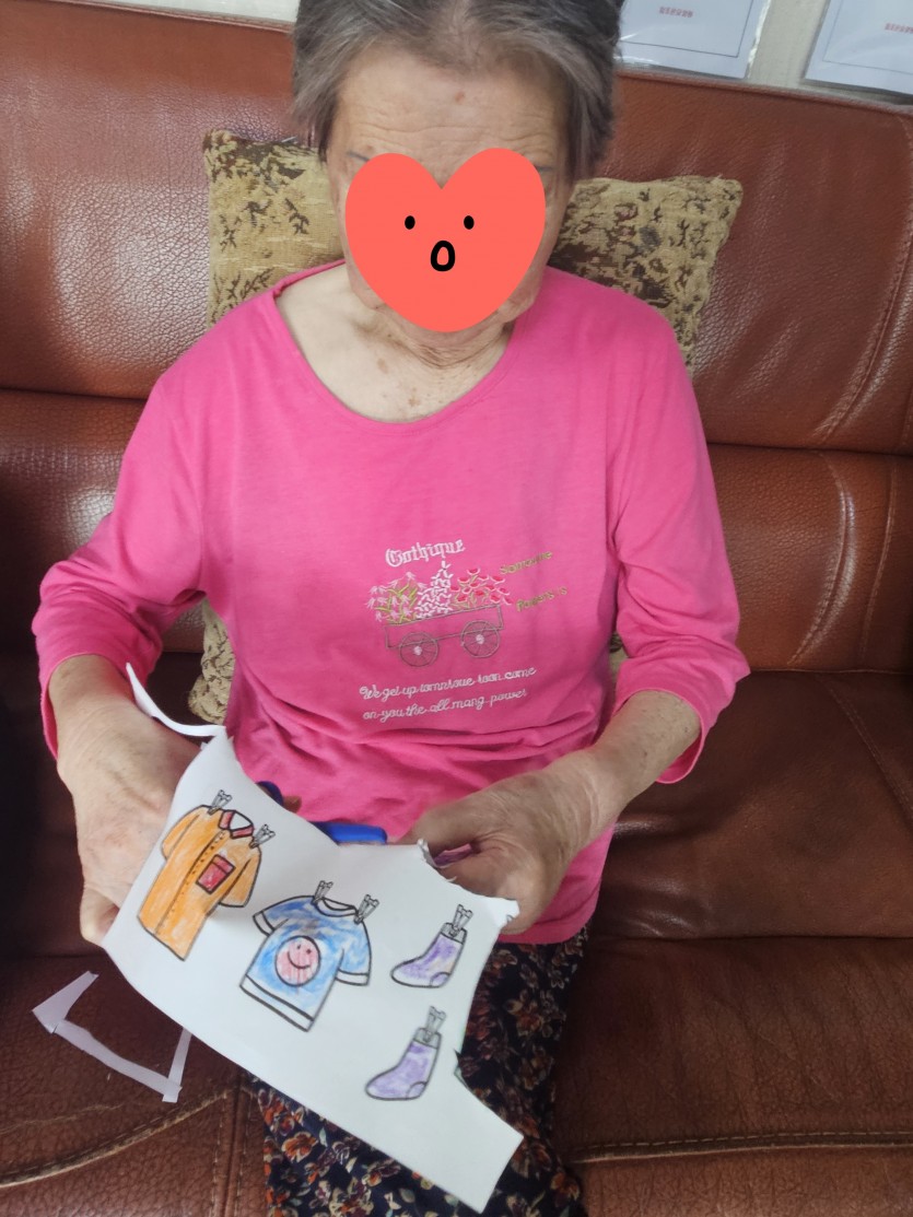 빨래 도안을 깔끔하게 정리해 주시는 배려, 풀을 톡톡 쳐서 꼼꼼하게 붙이는 섬세함, 그리고 완성된 빨래를 보며 기뻐하는 순수한 모습까지!