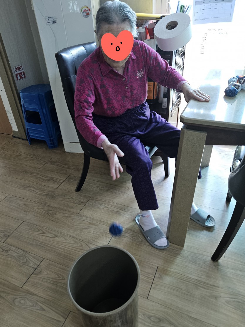 또, 처음엔 조준이 어려워 아쉬워하셨지만, 통을 가까이 옮겨 드리자 냅다 집어넣으시며 환호하신 어르신도 계셨어요. 모두 명중시킨 명사수 어르신, "통 거리를 더 멀리" 해달라고 요청하며 팔의 힘을 과시하신 어르신까지, 모두가 집중하며 즐거운 시간을 가졌답니다!