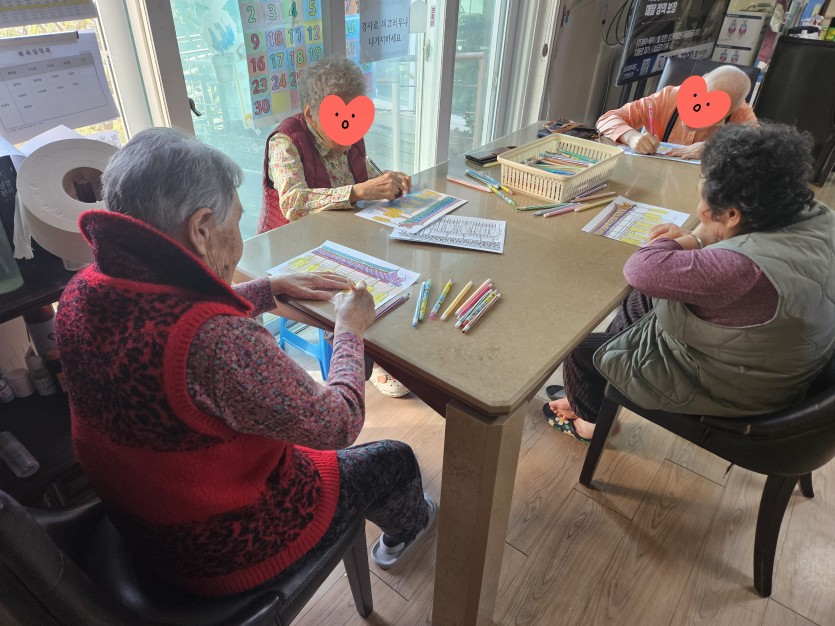 색칠에만 집중하신 어르신, 문과 벽을 살색으로 칠하며 유쾌한 웃음을 주신 어르신까지, 모두가 구수한 전통의 맛에 푹 빠졌던 하루였어요.