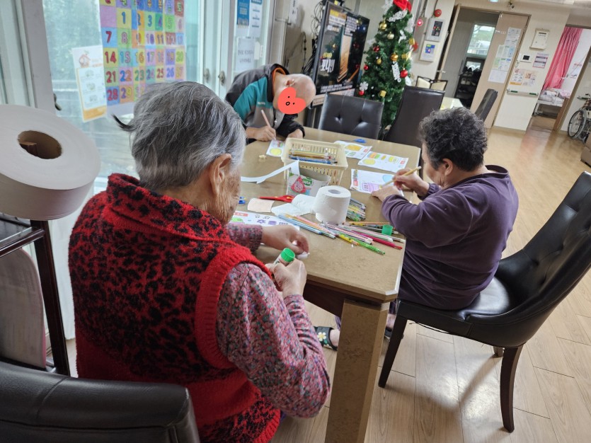 호빵을 모르신다고 했지만, 서서 색칠하고 거침없이 자르고 붙이신 열정적인 이*배 어르신도 계셨답니다. 열심히 색칠하고 꼼꼼하게 자른 뒤 풀칠까지 완벽하게 마무리해주신 이*순 어르신까지!